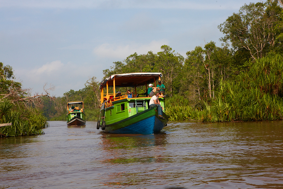 This morning you will be taken to the riverside town of Kumai where we will board our klotoks (riverboat) and travel into the National Park. This is the start of your 3 days/2 nights klotok tour. You will cruise slowly along the river looking for orangutans and other wildlife. Later in the afternoon, you will visit the 1st feeding station at Tanjung Harapan. Late afternoon back on the river to search for proboscis monkeys. Overnight on board your klotok (riverboat). (B,L,D)